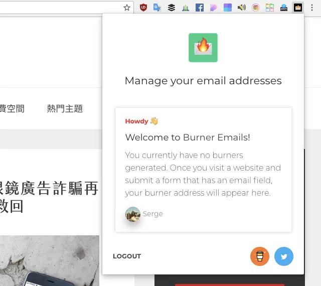 於是有個更好的解決方案,在不洩漏真實 Email地址的前提下又能持續收到郵件,本文要介紹的“Burner Emails”就是一款實現此想法的免費工具, Burner Emails提供 Google Chrome和 Firefox瀏覽器擴充功能,當使用者需要填寫 Email欄位時,它會自動產生一個轉寄地址並帶入表單 ,如此一來就能避免真實信箱被對方取得的問題。