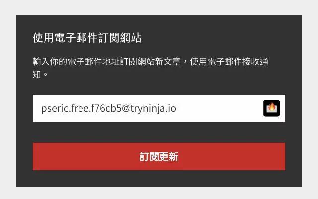 試著在免費資源網路社群的 Email訂閱網站中測試這項功能,在表單欄位右側會顯示一個 Burner Emails圖示,點選後會自動帶入產生的隨機信箱地址。